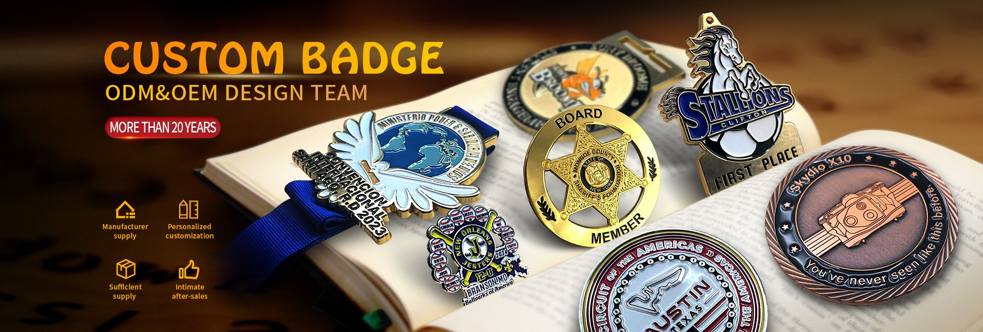 Productos principales:Pin de solapa, moneda de desafío, medallas, insignias, llaveros